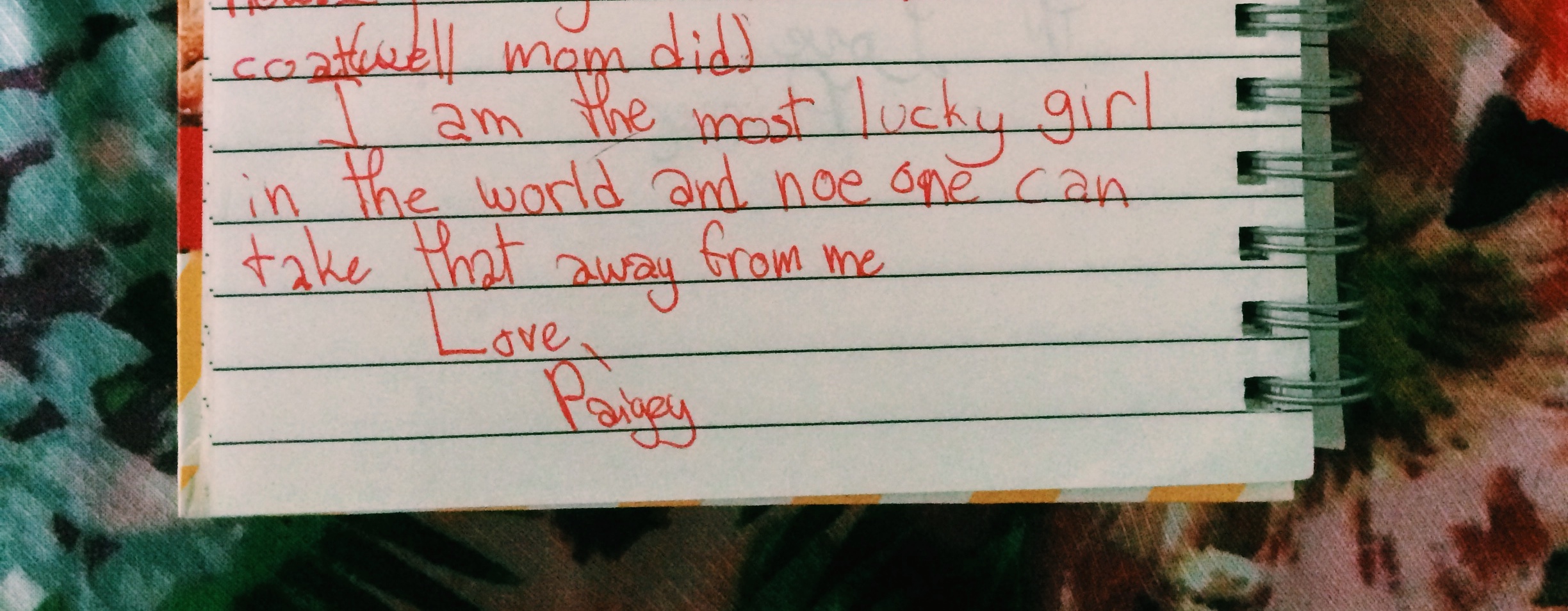 I found an old diary yesterday and took a little look through it. I flipped to a page and found the entry I made the day before the start of fifth grade. It talks about how my clothes have been folded and my nails look amazing thanks to my mom. Then on the last line, out of nowhere “I am the most luck girl and noe one can take that away from me”
