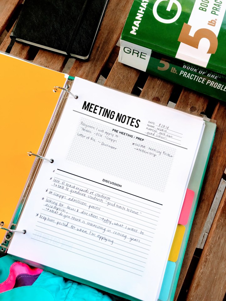 - Assembled a binder and filled it with notes on how to write a letter of intent, fellowship tips, application timelines, etc.