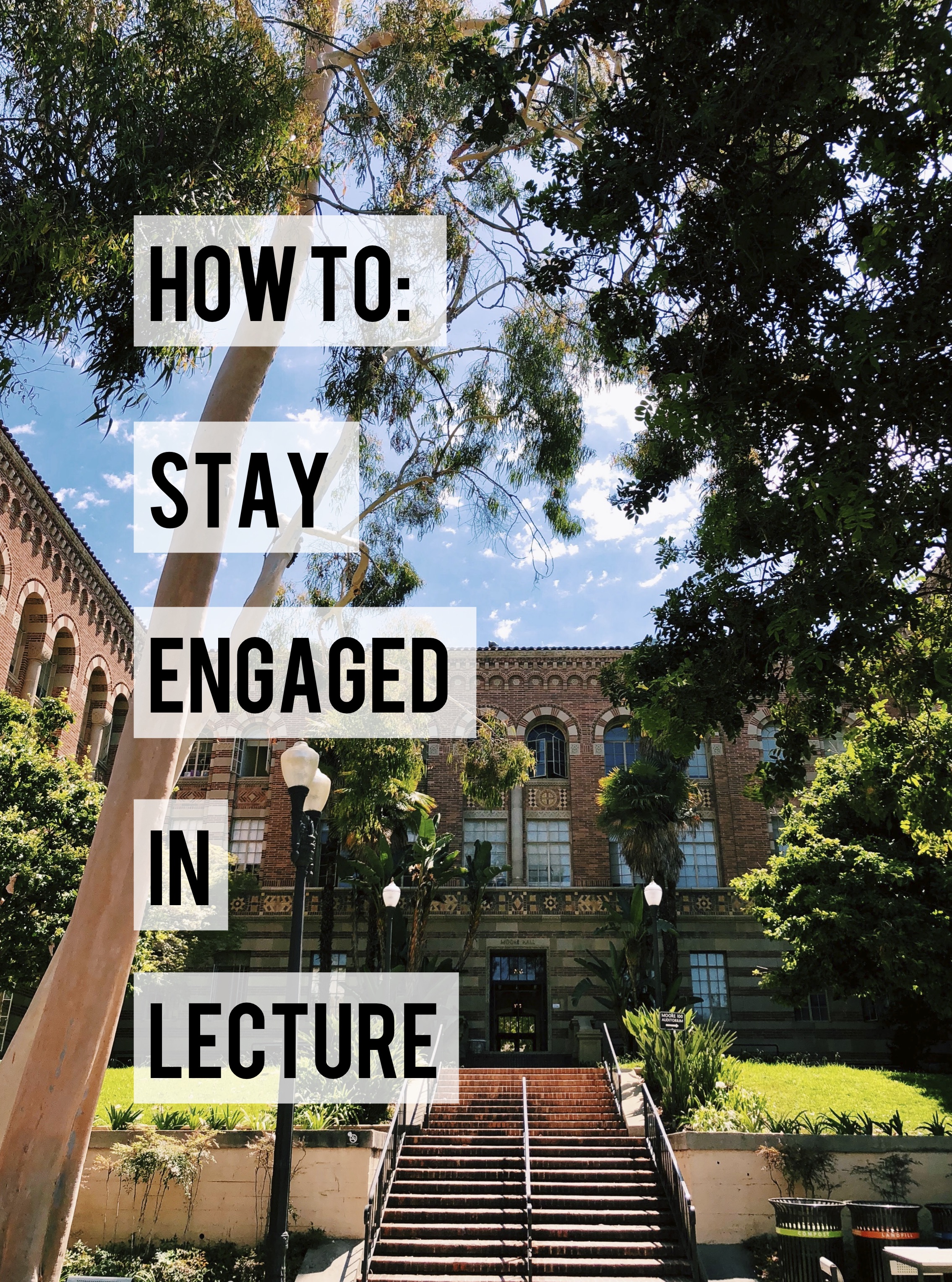 **If you are having a SERIOUSLY hard time staying awake in the lecture because of the room (low lighting, too warm, etc) TELL THE TA or someone in the department** if you feel comfortable telling the professor, that will be an even quicker solution. Professors DON’T want students falling asleep and they might not notice how the room might not be ideal for engaged students… If your critiques go beyond the room and onto their style, try to articulate your frustration in a productive way in the course review at the end of the class..