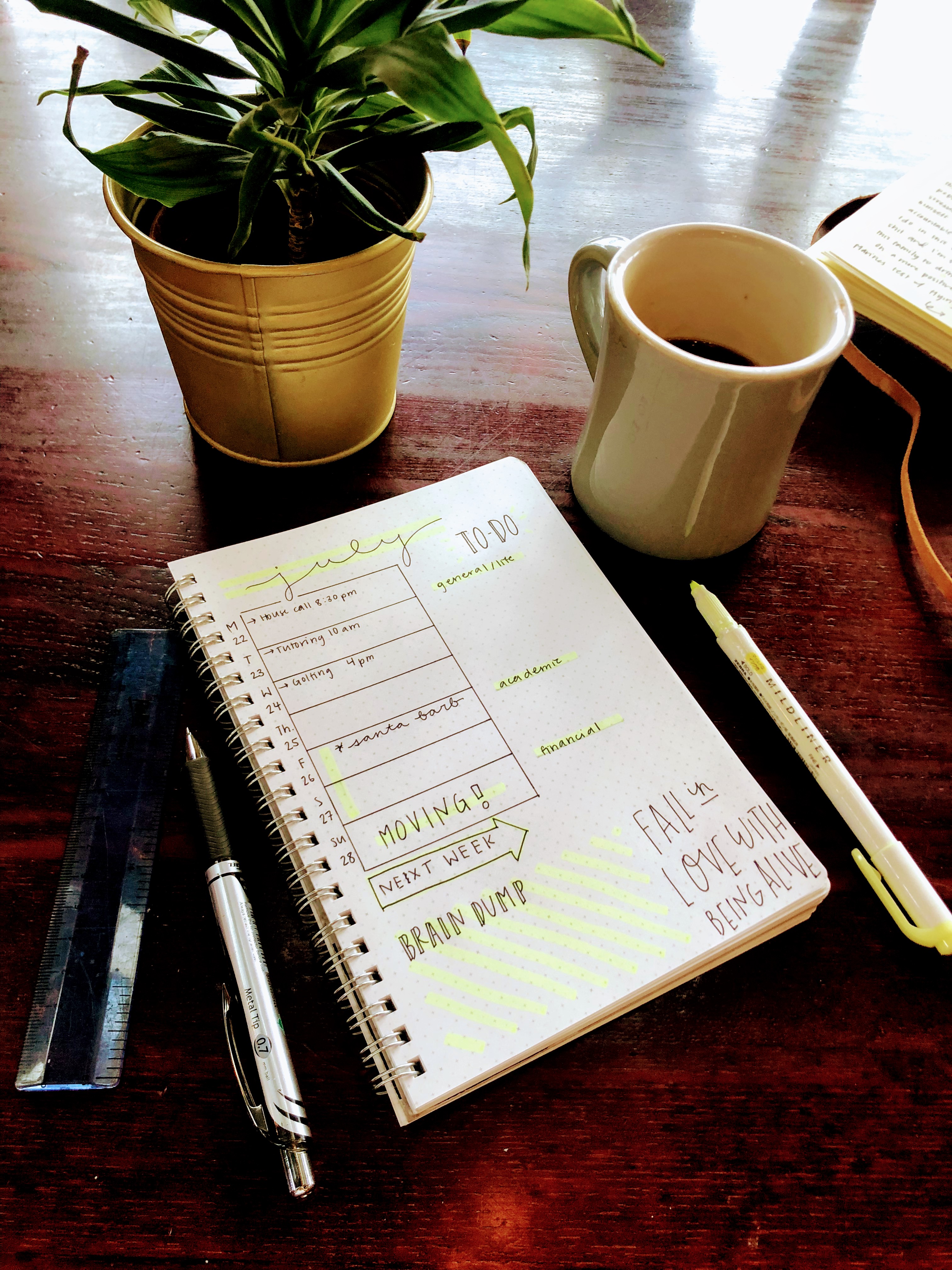 So lets go on a journey, shall we? I really only use a gel pen, highlighter, and a ruler. And coffee.